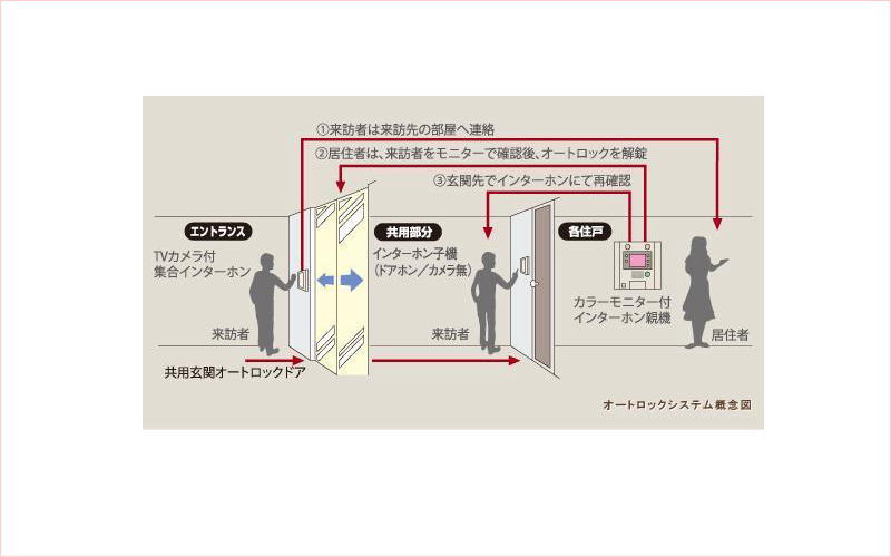 | 設備 | 車1台目 | 車2台目 | エアコン | 洗浄便座 | ドアフォン | 追い焚き | 宅配BOX | 防カメ | オートロック |